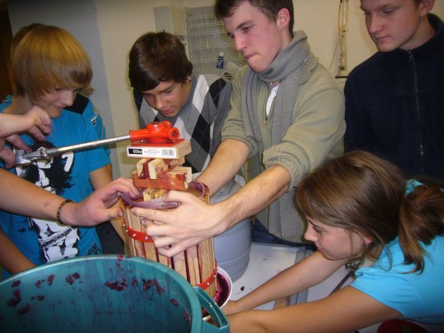 Wein -Weinbergsarbeit/ Weinlese -Keltern/ Ausbau des Weins -Gärverfahren (Maischegärung); Farbe und Gerbstoffgehalt -Gärversuche mit verschiedenen Hefen und Zuckern -Bestimmung der Gesamtsäure -Bestimmung der freien und gesamten schwefligen Säure -Untersuchung des Weins auf Alkoholgehalt und Extrakt